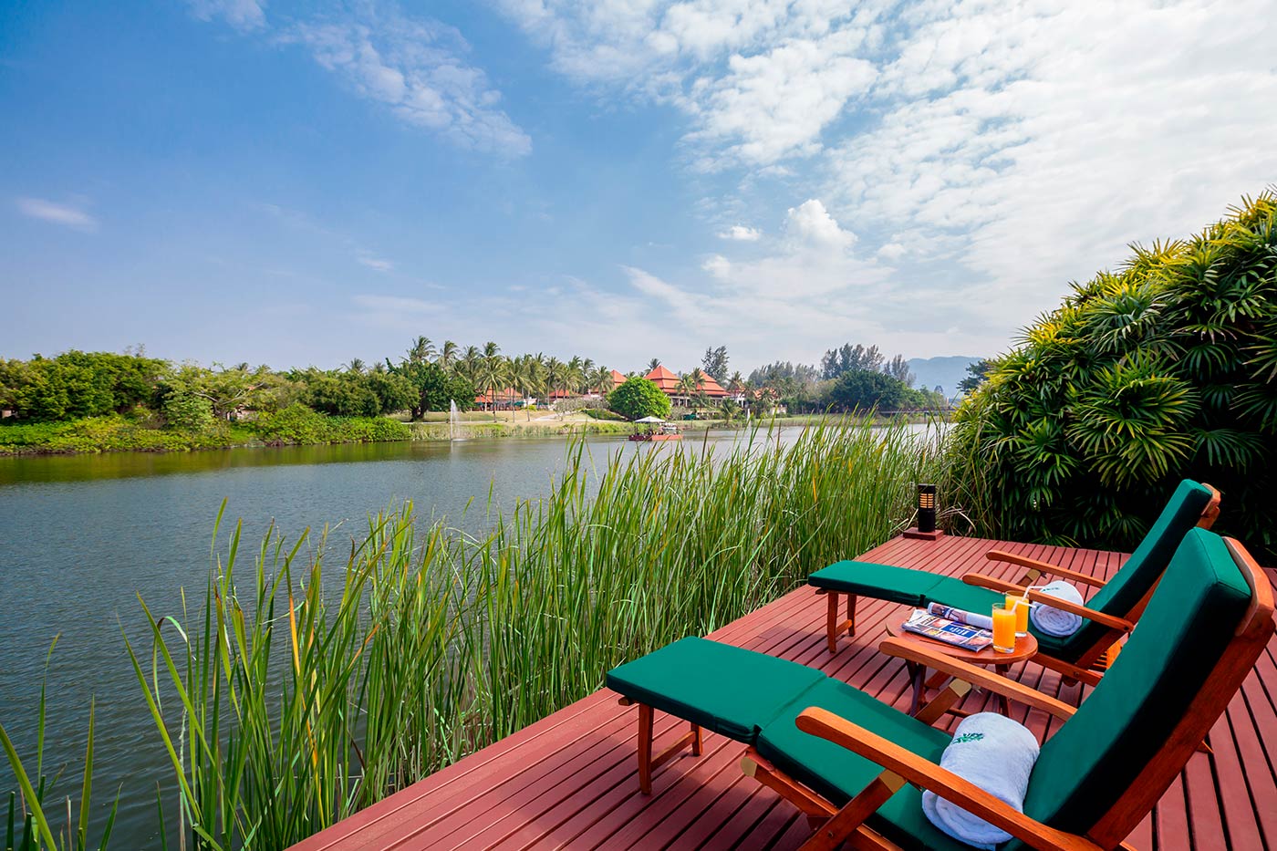 Одноэтажная вилла оборудована террасой с частным бассейном и джакузи, 2 спальнями, ванной комнатой с душем и ванной, гостиной, мини-кухней. К услугам гостей телевизор, телефон, набор для приготовления чая и кофе, мини-бар, сейф, халаты, тапочки, фен.
