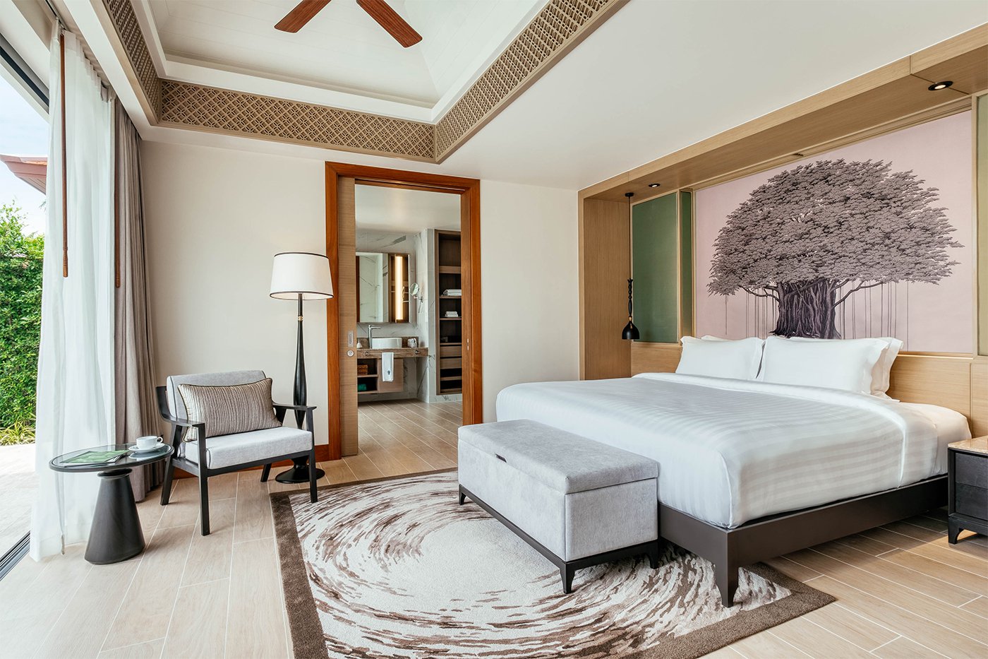 На фирменной вилле есть 2 спальни, гостиная, мини-кухня, санузел с душем/ванной, терраса с частным бассейном. Гости размещаются на двуспальной king-size и 2 односпальных кроватях. Среди удобств телевизор, телефон, сейф, мини-бар, фен, халаты, тапочки, Wi-Fi, чайно-кофейный набор.